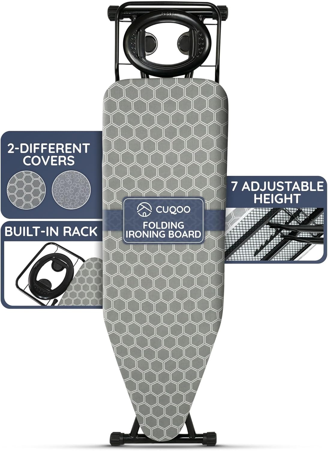 Padded cotton cover for smooth ironing.