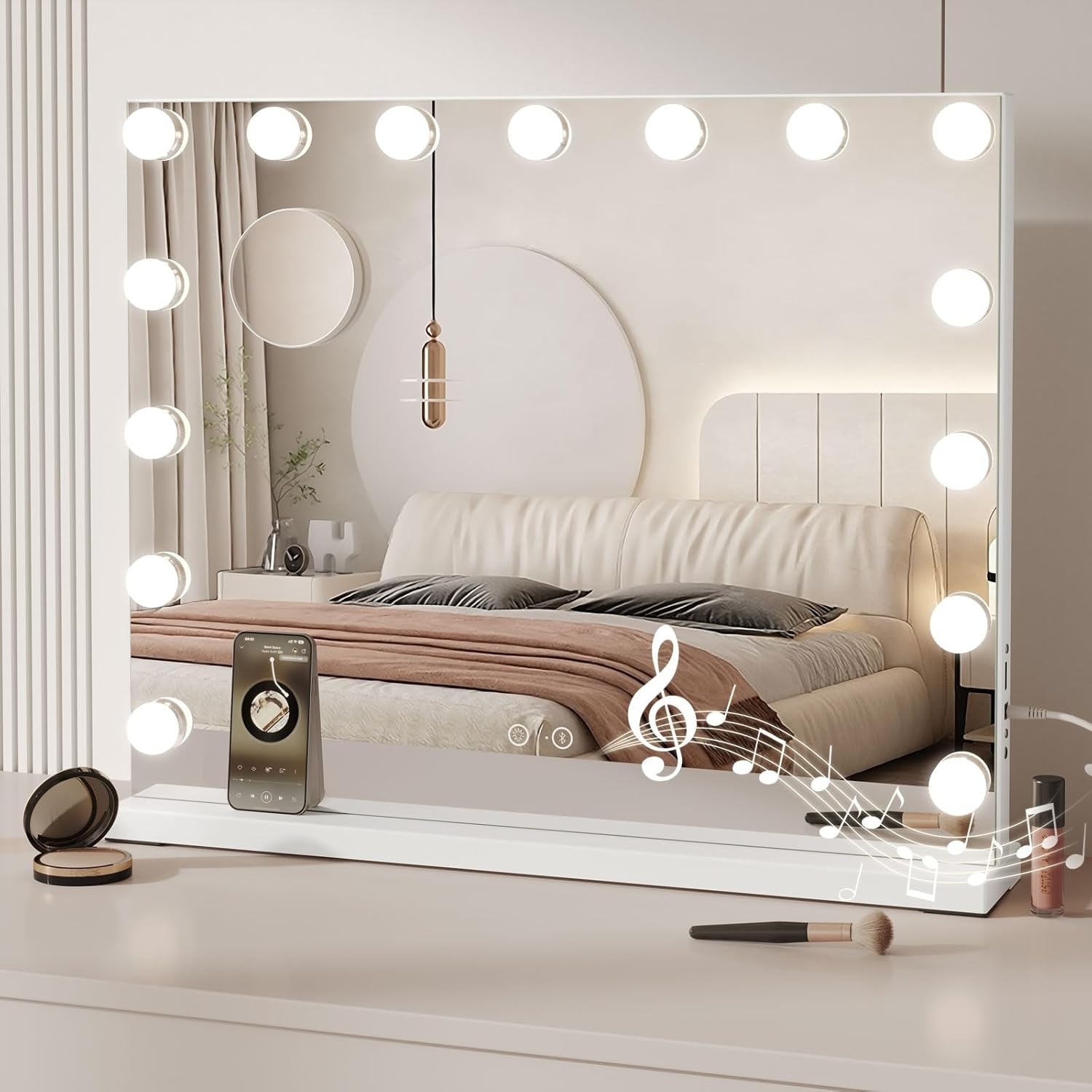 Bluetooth speaker built-in for music while doing makeup3-color lighting modes with adjustable brightness